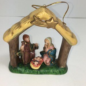International Bazaar Nativity Scene In Creche Christmas Ornament Ceramic 4" Box