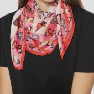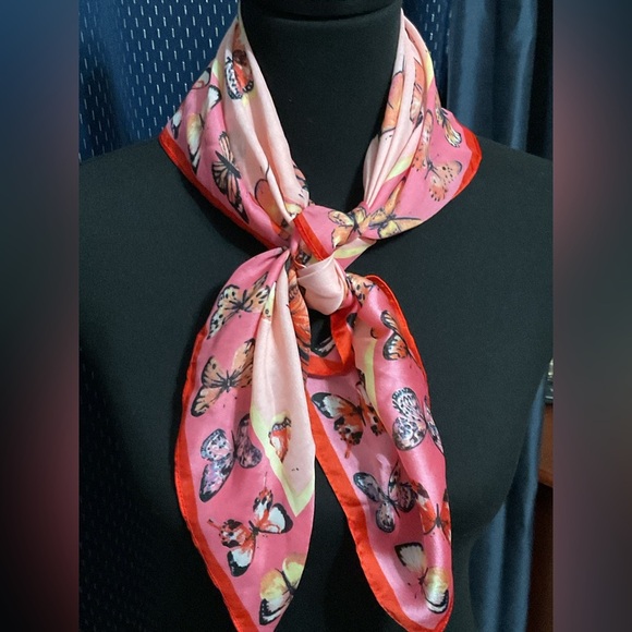 Add a touch of elegance with this pink butterfly scarf. Perfect for any occasion.