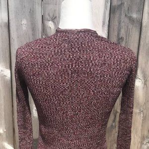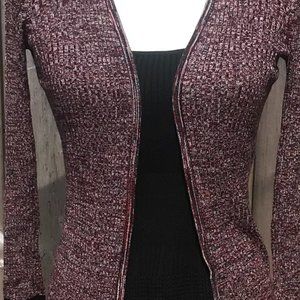 International Concepts (Macy's) Long Duster Sweater in Marled Burgundy Brown Knit with Black, White, and Orange Varsity Stripes at cuffs and hem. EUC with no pilling. Light weight sweater with open front to wear when the day is a bit chilly with jeans or a knit dress. INC size chart states XS comparable to sz 2 with Chest 33.5" Waist 27" Length from back of collar is approx. 32". Please see photos for fabric content and care guide. Necklace also for sale @MojoKitty9.