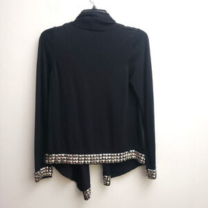 International Concepts Open Front Cardigan Black MED Black Silver Beaded Edgey