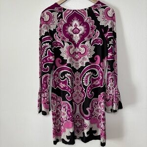 International Concepts Pink Black White Bell Sleeve Jersey Knit Dress Size M
