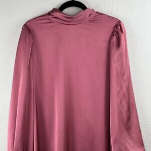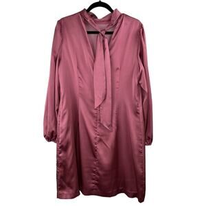 International Concepts Rose Pink Satin Tie High Neck Mini Shift Dress Large NWT