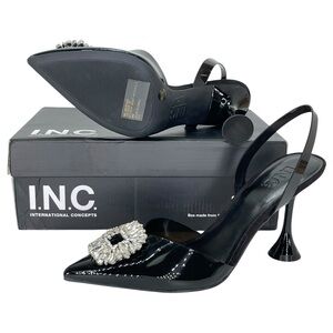 International Concepts Scienna Black Vinyl Rhinestone Womens Heels Size 8M
