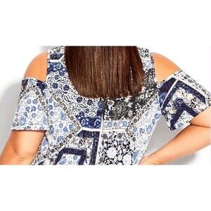 Designed with cold shoulder sleeves and a geometric pattern, this top is perfect for any occasion whether it be travel, a party or cocktail event or even for casual wear.