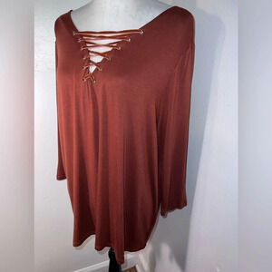 International Concepts, Woman, OX, V-neck with grommet lace yoke, 3/4 sleeves ultra soft top