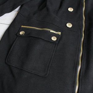 This winter jacket is made of heavyweight cotton with slight texture. It is suitable for cold fall days or moderate winter days. The zippers above the pockets are decorative. It is gorgeous quality (zippers are made of metal) and it is brand new with tags.