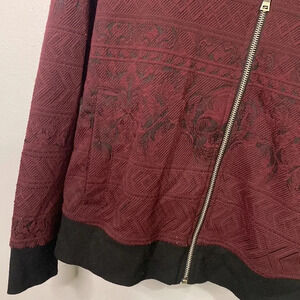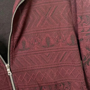 Used but in great condition, two front pockets, zipper works great, black, and dark burgundy