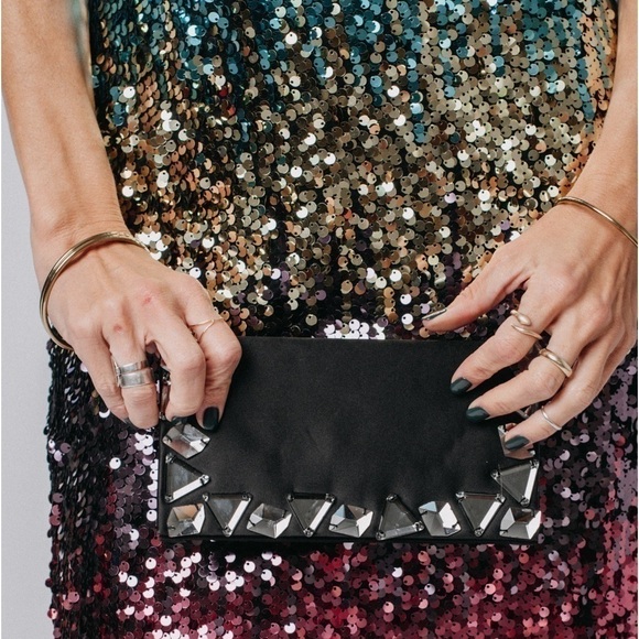 International Concepts I.N.C. Black satin clutch with large chunky crystal stones. Such a cool bag for a dressy holiday event.