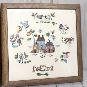 International Heartland Village Farmhouse Stoneware 2 Tile Trivets Wall Hangings