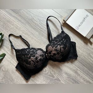 International Intimates Black Lace Underwire Push Up Padded Bra. Size 36C