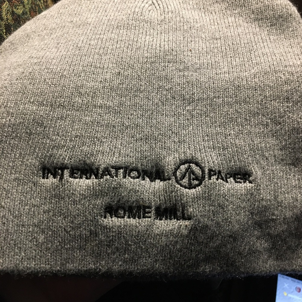 International Paper Rome Georgia Mill grey OSFA cap will work for a man or a woman! Excellent for keeping your head warm! Made in the USA!