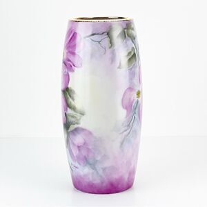International Porcelain Art Teachers Hand Painted Pink Flowers Floral Vase