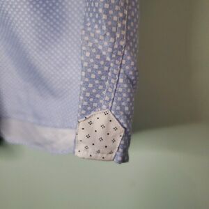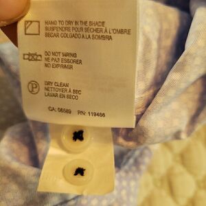 * Hem is slightly longer in back - wear tucked or untucked - unique contrasting fabric detail at the hem on both sides