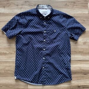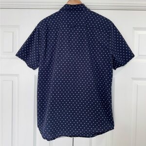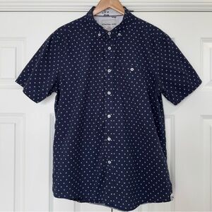 International Report Shirt Large Blue White Button Up Anchors Short Sleeve