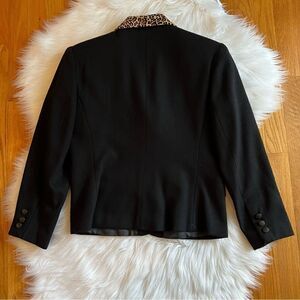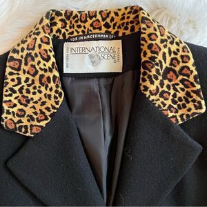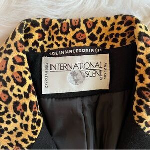 International Scene Black Blazer Leopard Collar Size 8