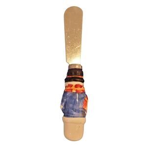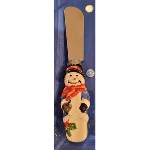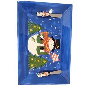 International Silver Co Ceramic Snack Snowman Platter w 2 Spreaders Christmas