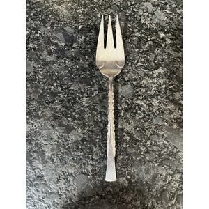 International Silver Co Deepsilver Silverplate 1971 Camille 4 Pc Hostess Set. Includes 1 large solid cold meat serving fork, 2 tablespoon serving spoon, and 1 pierced tablespoon serving spoon.