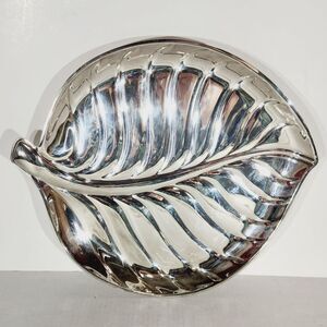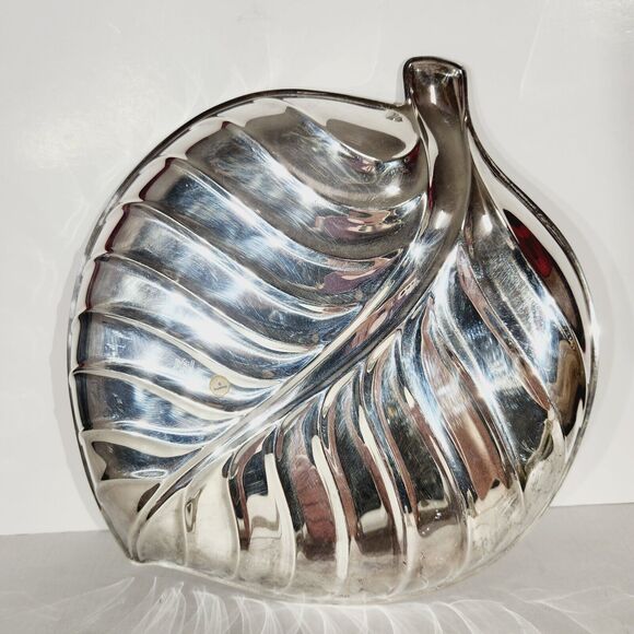 International Silver Co Leaf Serving Tray Decorative Tropical MCM Platter Plated