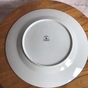This exquisite serveware plate features a delicate cream floral pattern on a pristine white background, perfect for elevating any dining occasion. Its classic round shape and slightly raised rim make it an ideal choice for both formal and casual settings. Crafted with attention to detail, this plate adds a touch of elegance to your table. This discontinued pattern is 326 Springtime by International Silver Company. Measurements are approximately 12 1/4” in diameter. Great condition. No chips, cracks or repairs. No wear to the platinum trim. Smoke free home.