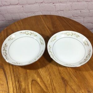 International Silver Company 326 Springtime fruit/dessert bowls. Set of two. This pattern has white flowers with green and tan leaves. There is also beautiful platinum trim on both pieces. Made in Japan. Each bowl measures approximately 5 7/8” in diameter. Great pre-owned condition. No chips, cracks or repairs. There are some light surface scratches from use. Smoke free home.