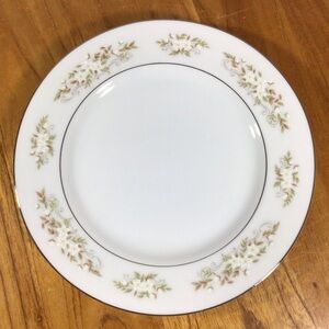 International Silver Company 326 Springtime salad plate. This pattern has white flowers with green and tan leaves. There is beautiful platinum trim as well. Made in Japan. This plate measures approximately 7 3/4” in diameter. Great condition. No chips, cracks or repairs. There are some light surface scratches from use. Smoke free home.