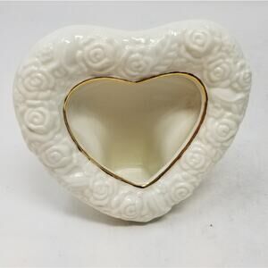 International Silver Company Ceramic Cream Heart Shaped Photo Picture Frame