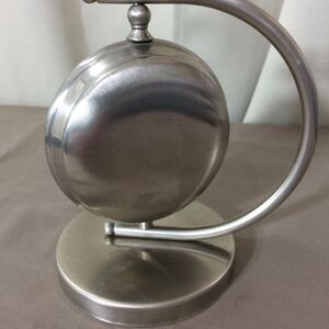 International Silver Desk Clock Rotates Quartz Battery Operated 6" Tall Working