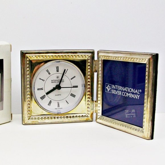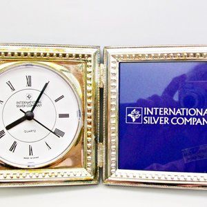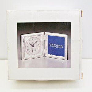 International Silver Co Silverplate Hinged Double Clock Photo Frame 301552 + Box