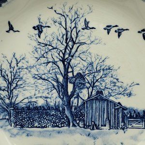 International Tableworks Riverwood Coupe Soup Cereal Bowls Blue Farm Scene