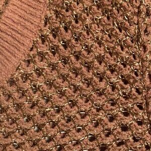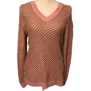 International Concepts v neck pullover sweater, long sleeves. Loose weave in a pink and gold metallic thread. Very pretty . Slits on side, cuffs, neckline and bottom I sweater ribbing . NWOT offers welcome