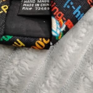 Make a bold statement with this unique computer-themed neck tie featuring classic internet URLs and tech terminology. The black background showcases vibrant multi-colored text patterns including website addresses, computer terms, and tech icons. Perfect for tech enthusiasts and digital professionals looking to add a conversation-starting piece to their wardrobe.