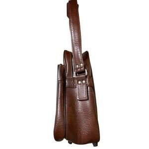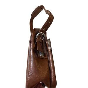 Step back in time with this vintage Interpur shoulder bag, made in Korea. Crafted from rich brown faux leather, this unique piece features: