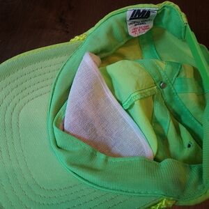neon Green cap with Interstate Batteries Racing logo. Features a braided detail. some wear but still very vibrant, the lighting washed out the color in the first two pics.