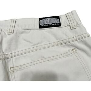 Made in USA wide leg cargos from Interstate, featuring oversized carpenter pockets, contrast stitching, and heavy canvas cotton. Roomy Y2K-era silhouette with reinforced seat and side pockets, classic for skaters or anyone into retro workwear and mall goth revival fits.