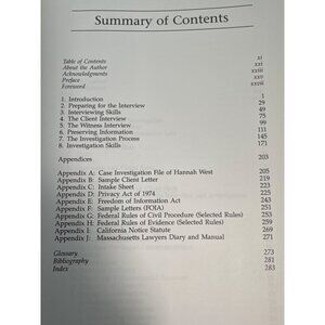 With a distinctly student-friendly voice, this new text provides a succinct overview of the interviewing and investigation process -- focusing on the key issues paralegals need to know in practice. The practical approach of the book uses realistic case scenarios to show interviewing and investigation skills in context, and draws from criminal as well as civil cases. The helpful pedagogy of the book includes: key terms practice tips review exercises in-depth chapter exercises glossary and bibliography. Users will also find: charts and exhibits throughout the book supplying them with the tools to help structure their interviews and investigations in practice coverage of using the Internet to help in investigation extensive appendices which provide a variety of resources to help in the investigation and interviewing process...