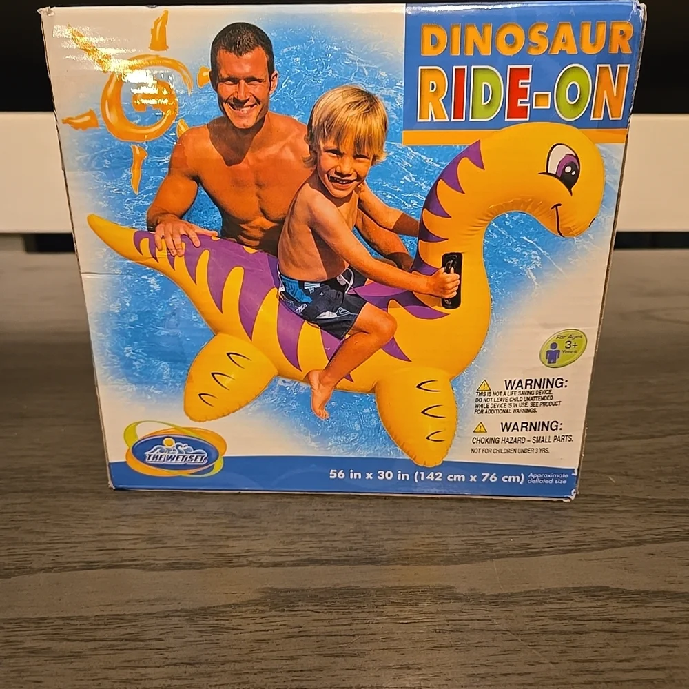 Delight your child with the Intex Dinosaur Inflatable Ride-On Toy. Featuring vibrant yellow and purple colors, this toy is perfect for pool adventures and imaginative play.