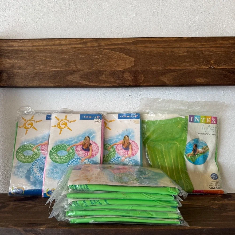Lot of 10 Intex inflatable pool items.