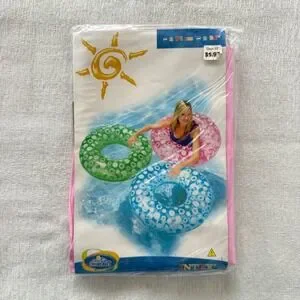 * 9 inflatable swim rings (7 green, 1 blue, 1 pink)