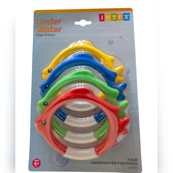 IT'S ALMOST SUMMER TIME! Set of colorful Intex underwater fish rings. Includes red, yellow, green, and blue rings. Perfect for pool fun.