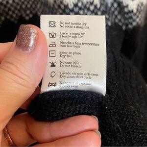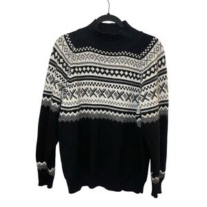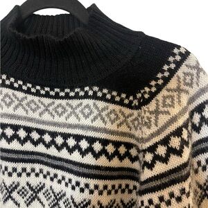 Inti Alpaca brand mock neck sweater in a fair isle print in black, white, and gray. Very soft and cozy. Excellent used condition
