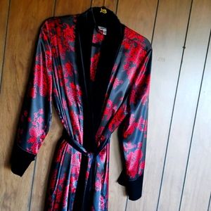 Camisole Nighty w Satin and Velvet Robe. Oriental print design. Robe is XL for added length and nighty is size average womens M. Sold only as set.