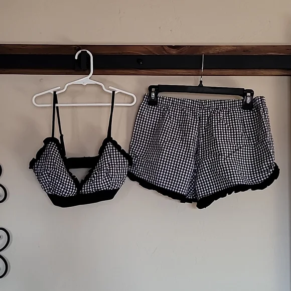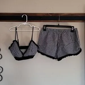 Bra and Short Set Black and White Checked Size S