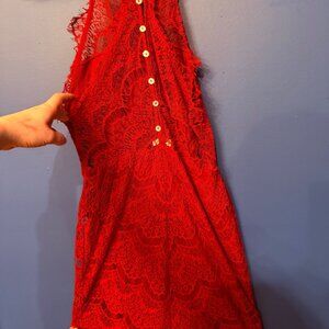 Free People Intimately Red Peekaboo Lace Button Down Slip Dress Womens Size S. Material is woven and lacy with a built in slip. Gently used with no flaws, rips or stains.
