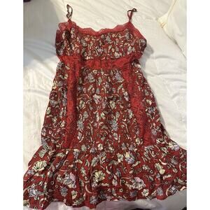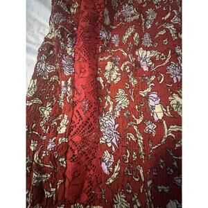 Intimately FREE PEOPLE Last Night Mini Dress Red Lace Floral Large - L
