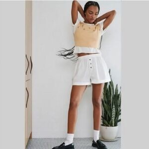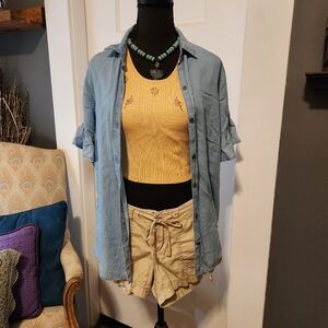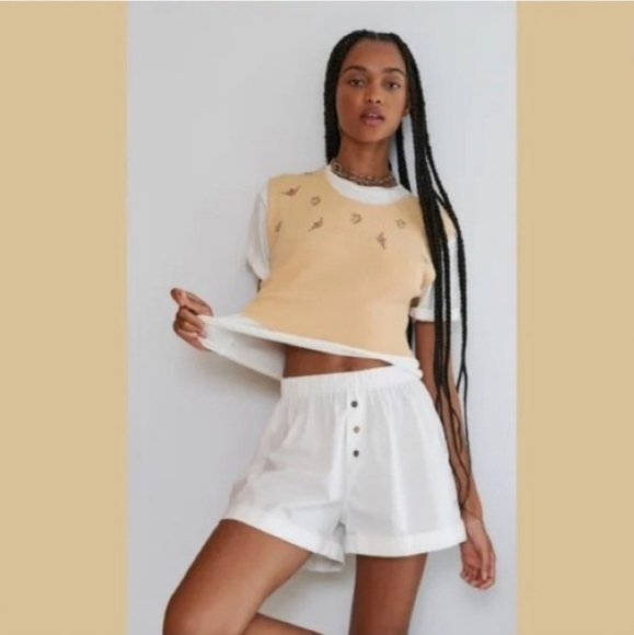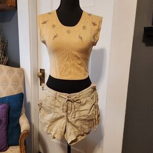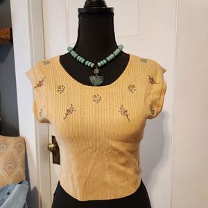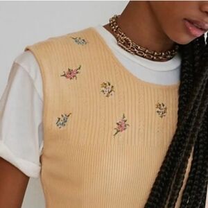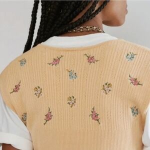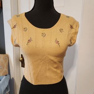 EUC Crop sweater with embroidered bouquets on top and ribbed waist by Free People. No noted snags or tears.
