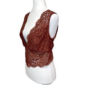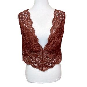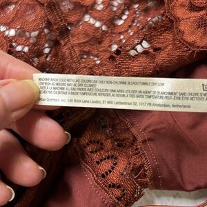 Elegant rust lace with intricate patterns. Elastic straps on back . Perfect piece to your wardrobe.