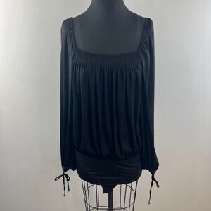 Intimately Free People Black Body Top Pleated Square Neck Smocked Size Large L