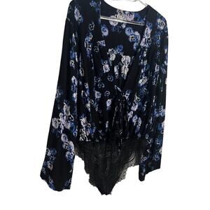 Intimately Free People Black Blue Floral Tie Lace Body Suit Medium