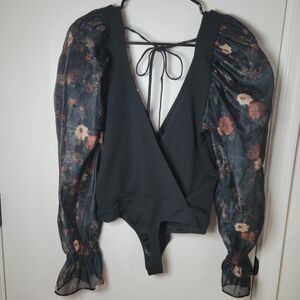 Intimately Free People Black Floral Bodysuit | Size Medium | NWT