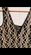 Intimately Free People" women's mini dress, size S, features a black base with a gold lace overlay in a repeating geometric pattern. It has a V-neckline with a sheer black mesh insert, detailed with small polka dots. The sleeveless design includes scalloped trim along the neckline and straps. The fabric composition is 77% Nylon, 17% Polyester, 6% Spandex for the body, and 100% Nylon for the trim.